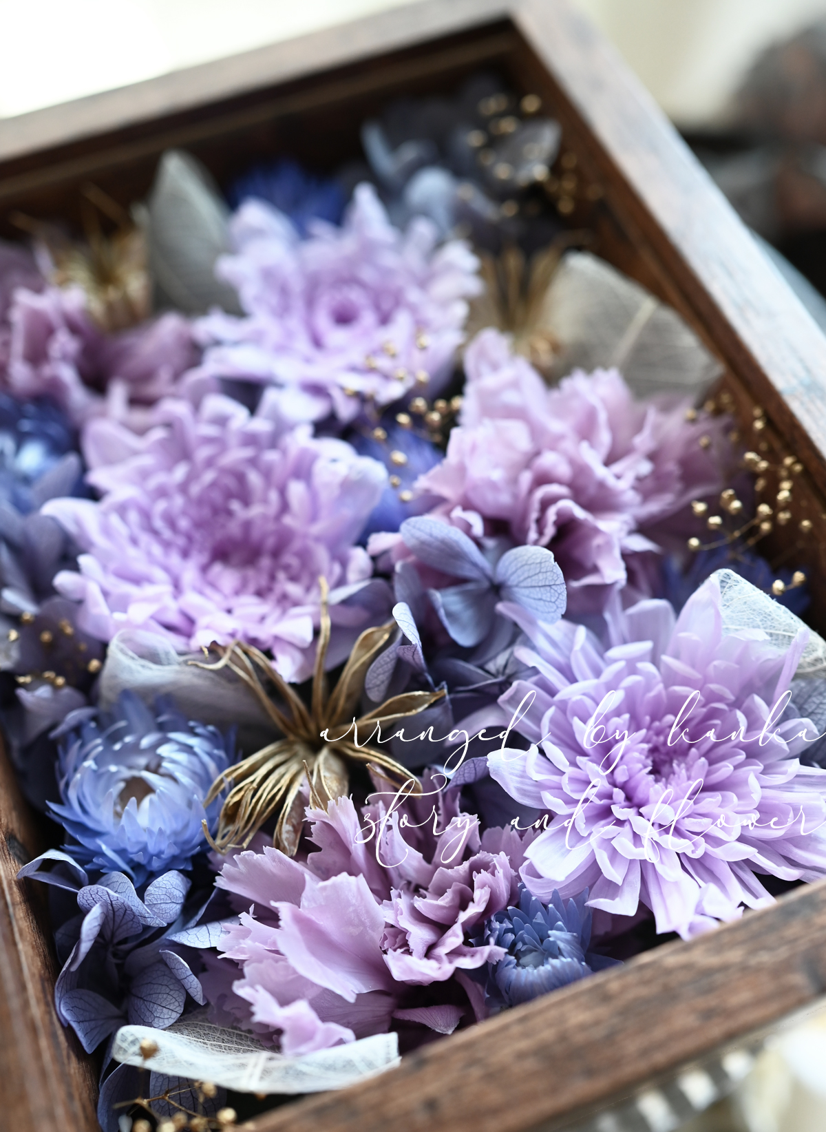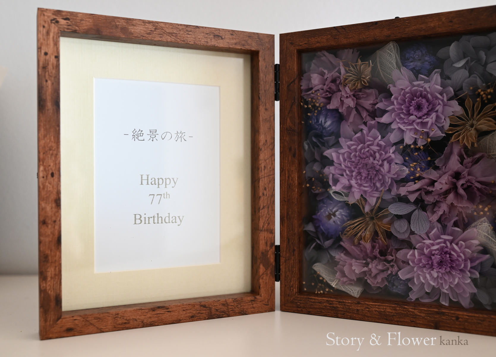 フレームの片方にはプリザーブドフラワーのアレンジ、